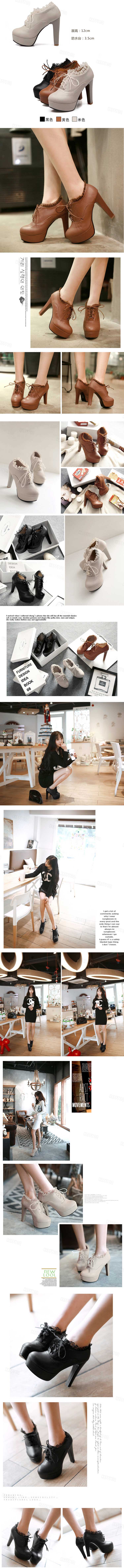大尺碼女鞋蕾絲牛津鞋高跟鞋粗跟鞋防水台女鞋學院風-黑/棕/米34-43【AAA1915】